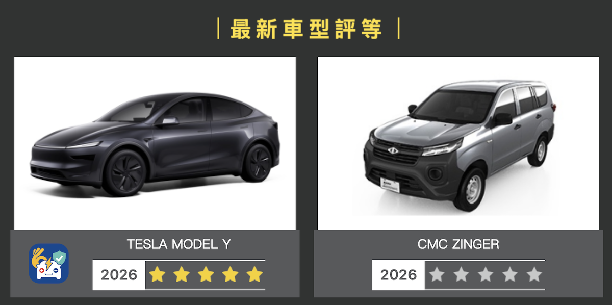 ●臺灣新車安全評等計畫(TNCAP)公布最新評等結果,Tesla Model Y獲得五顆星,CMC Zinger獲得0顆星。